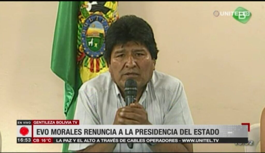 2019.- Evo Morales renuncia a la presidencia de Bolivia, tras intensas semanas de protestas ante acusación de fraude electoral y supuesta manipulación de votos.